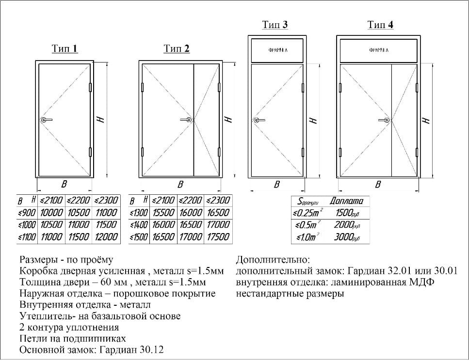 Для усиленных дополнительным стальным каркасом дверей предлагается другое соотношение размеров прохода и дверной конструкции.