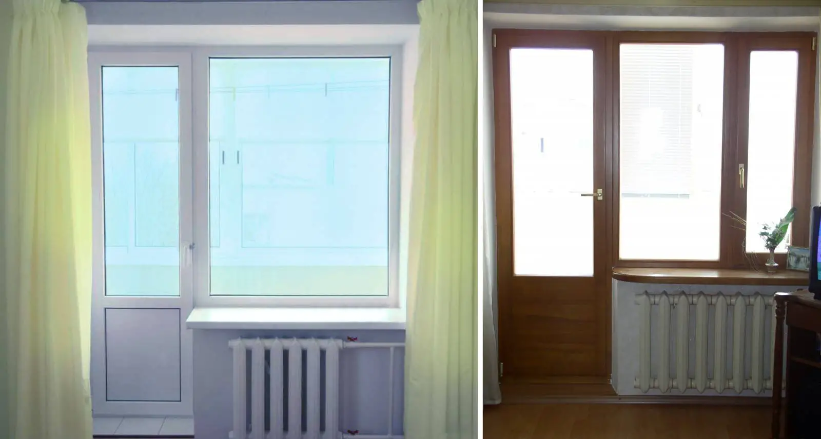 Нет точного мнения, какие двери лучше – стеклянные или разделенные пластиковой панелью. Каждая из них хороша и отличается по стоимости: стеклянные двери в пол дороже. Стильно смотрятся раздвижные модели, их цена в 2 и более раза выше привычные распашных дверей для балкона.