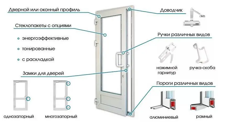 Для дверей из пластика, устанавливаемых в частном доме, используются специальный профиль, имеющий особые воздушные камеры и оснащенный ребрами жесткости. Чаще всего, говоря о последних, подразумевается металлическая арматура. В зависимости от мощности и размеров конструкции при ее изготовлении могут быть использованы специальные доводчики и силовые петли.