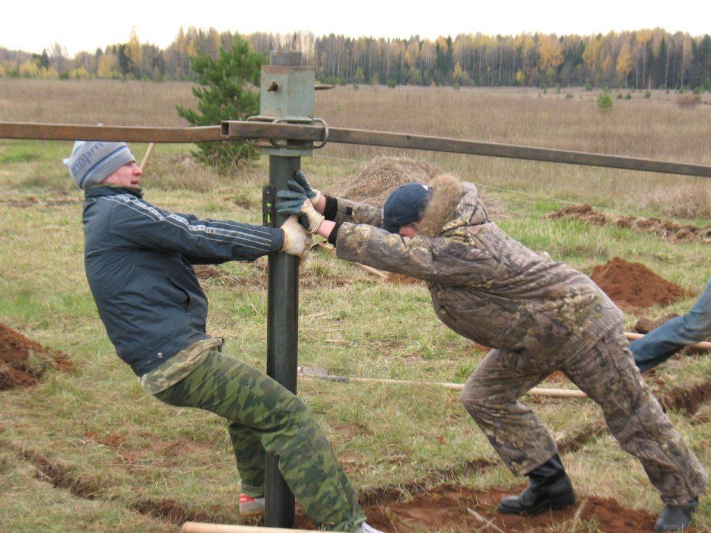 Для закручивания свай вам понадобится несколько пар рабочих рук На небольших участках установка свайного фундамента с применением специальной техники нерентабельна, гораздо выгоднее закручивать сваи своими руками.