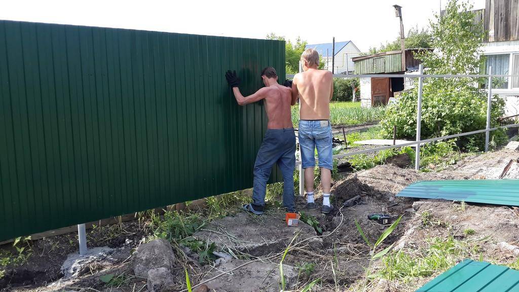 Монтаж забора из профнастила без сварки