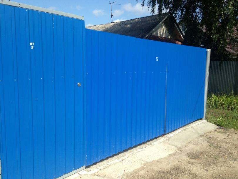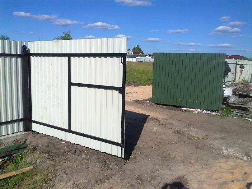 Я посоветовал изготовить распашные ворота из профлиста по металлическому каркасу (могут быть ворота и с деревянным каркасом).