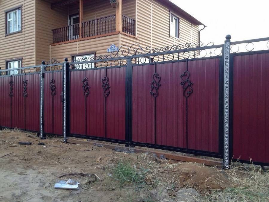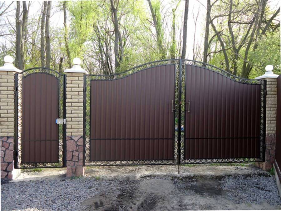 Ворота из профнастила с элементами ажурной ковки