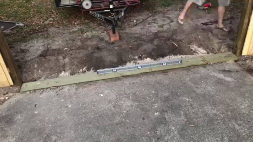 Если выбрана конструкция откатного типа, требуется наличие фундамента. Следует выкопать траншею 1,5 метров в глубину и 40 сантиметров в ширину. Туда помещаем швеллер, к которому приварены куски арматуры. Заливаем конструкцию бетоном. Для полного высыхания бетона понадобится около недели (время может отличаться в зависимости от погоды).