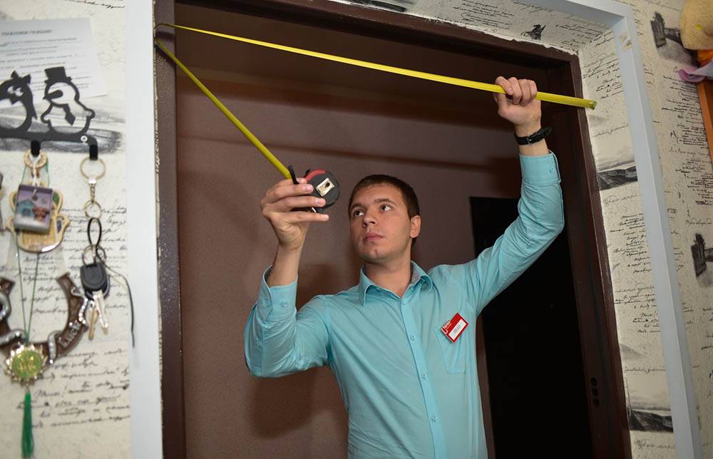 Монтаж двери требует внимательного и аккуратного выполнения работ на всех этапах. Перед установкой двери в квартире надо сделать замеры проёма, чтобы изготовить изделие, подходящее по размерам. В идеале периметры наружного и внутреннего полотна деревянной двери должны совпадать, иначе конструкция будет деформироваться. Порожек должен быть общий, объединённый бетонной стяжкой или изготовленный из других материалов. Его подготавливают перед установкой короба.