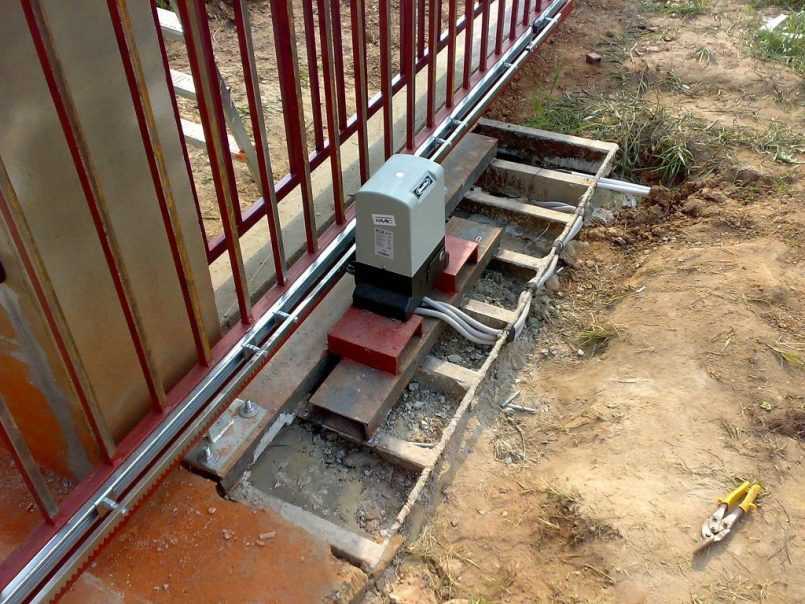 Автоматика для откатных ворот обычно устанавливается на специальную площадку для привода или фундамент. При выборе привода стоит учитывать вес ворот.