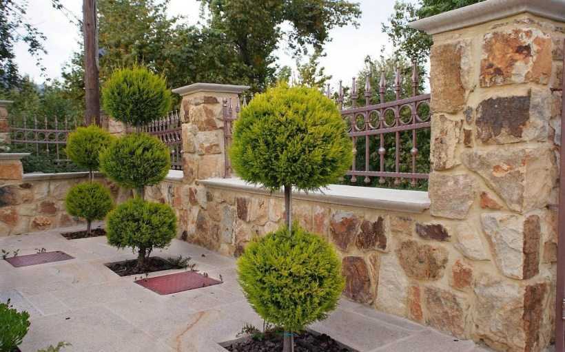 - Каменные изгороди неизменно смотрятся богато. Они могут добавить привлекательности даже скромному по площади двору.