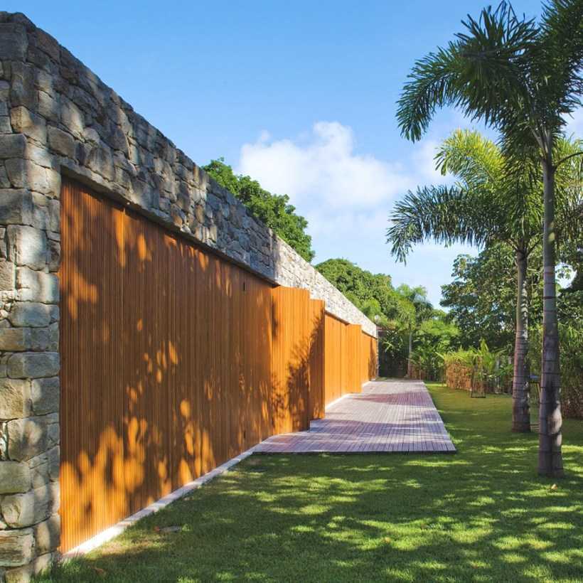 - возможность комбинирования камня разного типа и других материалов позволит создать из забора архитектурный шедевр;