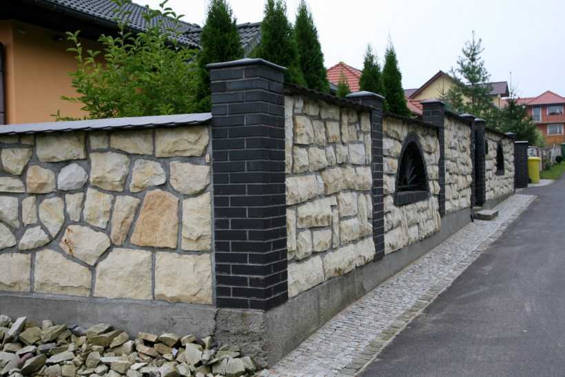 Забор с каменными блоками