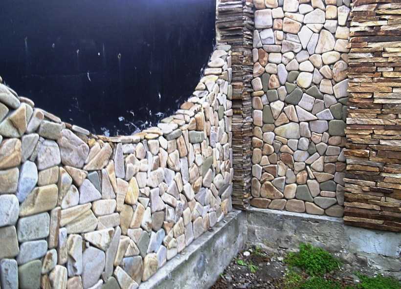 В этом варианте важно тщательнее подбирать положение камней для более качественного сцепления с раствором. Если образуются небольшие щели, их заполняют мелким щебнем или галькой