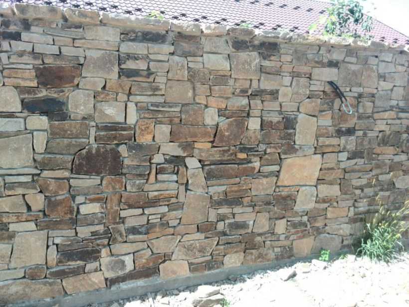 - Осуществляем кладку стен изгороди. Можно воспользоваться либо бутом правильной формы, либо дикарем неправильной формы. Первый вариант обойдется вам дороже. Но в обоих случаях можно соорудить, по истине, красивый забор. Для сооружения ограждения из камней правильной формы потребуется раствор цемента и песка. Камень укладывается таким же образом, как кирпичная кладка в разбежку. Однако ряды нужно будет перевязать между собой. В случае применения камней неправильной формы, технология кладки будет немного отличаться. Нужно будет подбирать такие куски, чтобы они компоновались с соседними камнями, а пустоты между ними тщательно заполнять раствором.