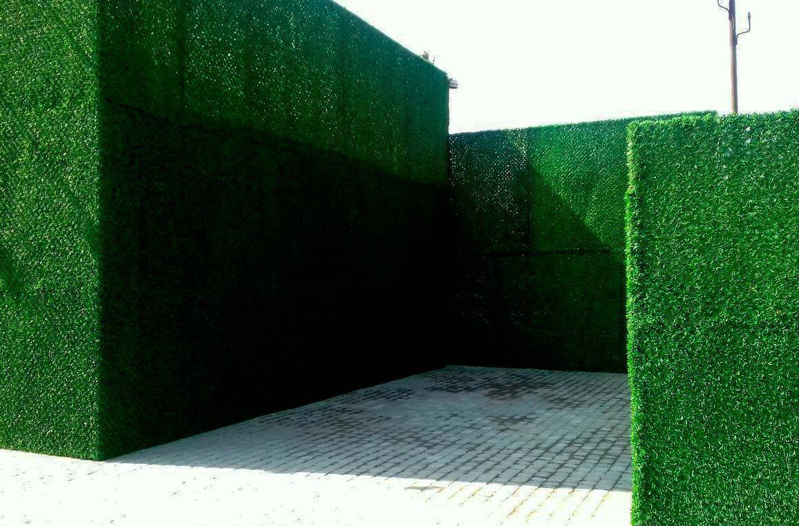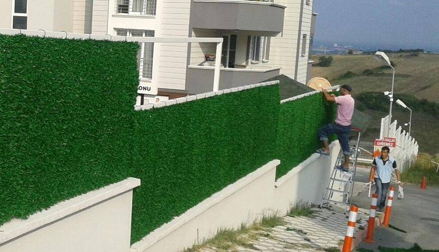 Забор из искусственной травы представляет собой кокон из рулонного покрытия, прикрепленный к опорной конструкции. Это может быть обычное ограждение традиционного типа или специально изготовленная решетчатая конструкция.