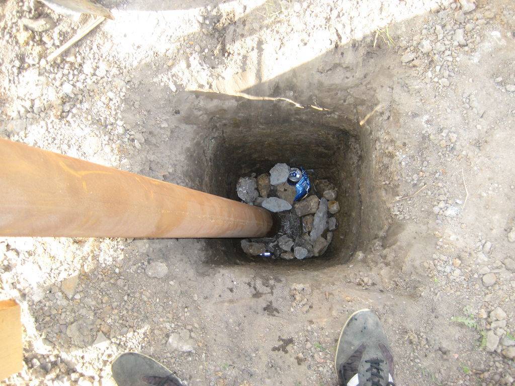 - Затем во вырытые отверстия необходимо на дно подсыпать гальку или песок на 10-15 см для того, чтобы обеспечить дренаж.