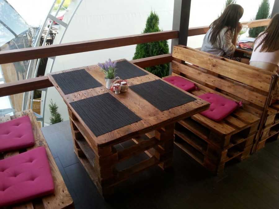 Из одного поддона можно смастерить обеденный стол для дачного домика.