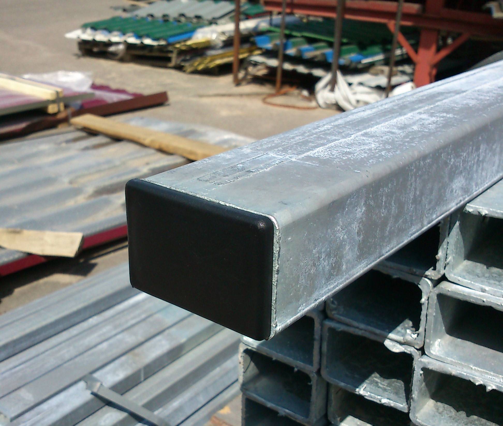 Верх столбов, края лаг защищают заглушками, можно пластиковыми. Так, внутрь труб не попадет влага.