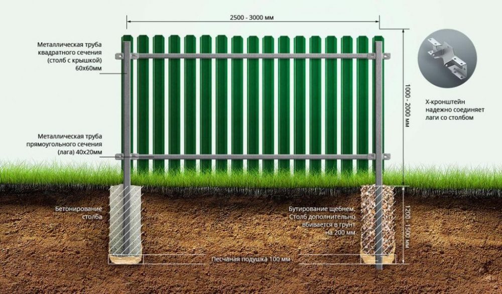 Правильный монтаж евроштакетника: схема