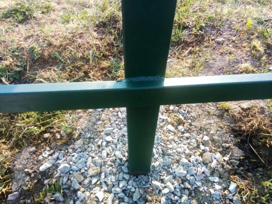 Забор из сварных прутьев оптимально делать на площадке 3,5*2,5 метра, которая необходима под раскладку и сваривание секций. Лишь только потом монтируют готовые секции на стойки. Ровное дворовое покрытие прекрасно подходит. Желательно поверхность закрыть двумя — тремя листами металла, защитив от повреждения электросварочными работами.