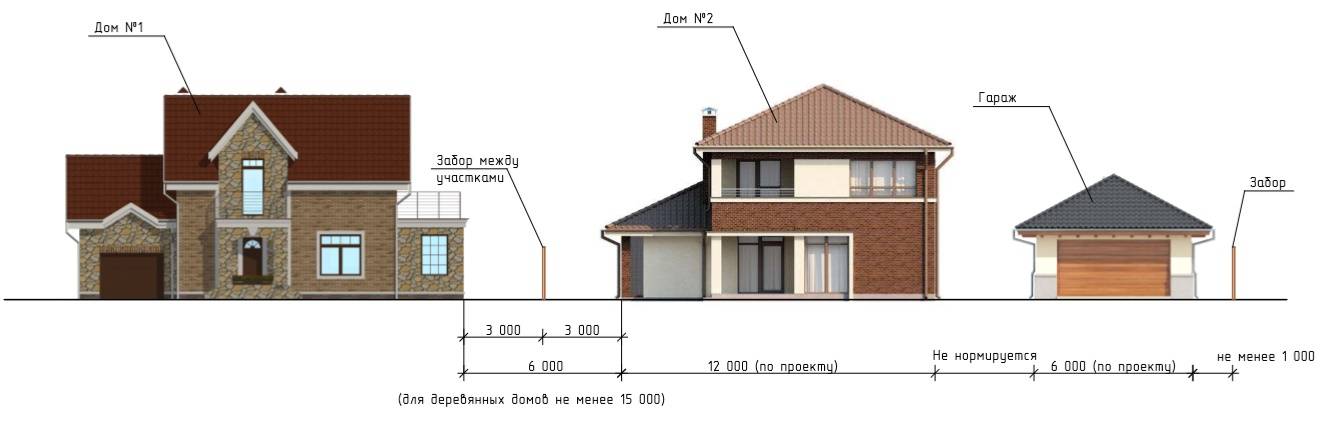 | От ограждения до соседского дома | 3 м | Данный параметр можно изменить, если доказать обоснованность корректировок. Например, если соседский дом стоит близко к участку, то расстояние можно уменьшить. |