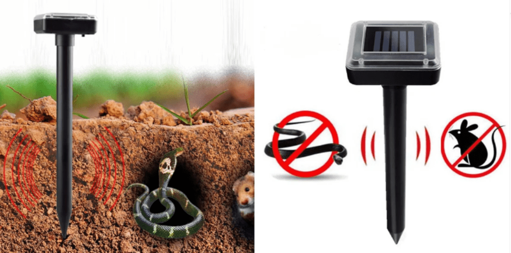 Чтобы снизить риск встречи со змеей на своем дачном участке, можно прибегнуть к помощи технологий. Ультразвуковой отпугиватель вполне может справиться с этой задачей. Отпугиватель создает дискомфортные для них вибрации. Действует он несложно. Просто вставляется в землю, включается и издает звуки на очень низких частотах. Это создает вибрацию почвы, чего змеи очень не любят, и они покидают участок.