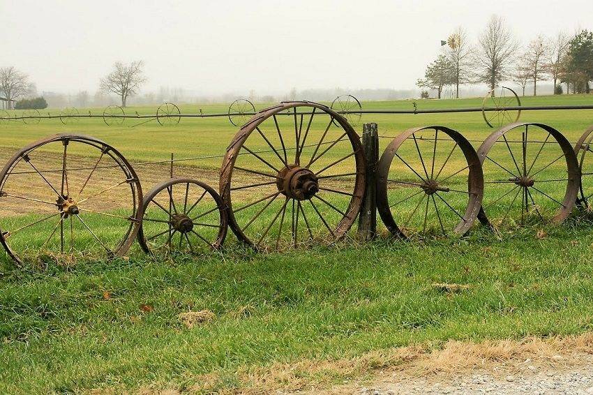 Проявляя фантазию можно использовать любые материалы, например, старые колеса.