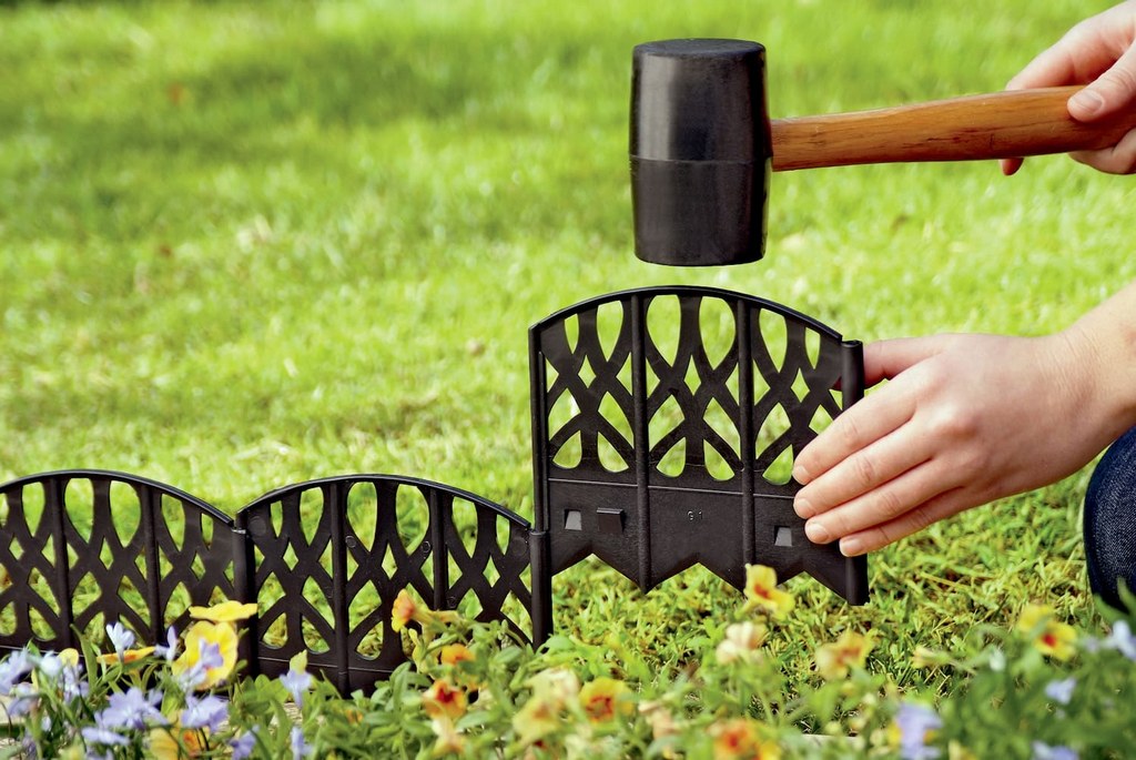 На прилавках садового магазина можно увидеть ажурные, разноцветные полимерные конструкции. Ими огораживают цветники, дорожки, кусты и деревья. Технологии пластикового литья позволяют получить декоративный заборчик для сада различной формы и размера. Цена изгороди невысока – для её делают из вторичного сырья после утилизации полимерных материалов.