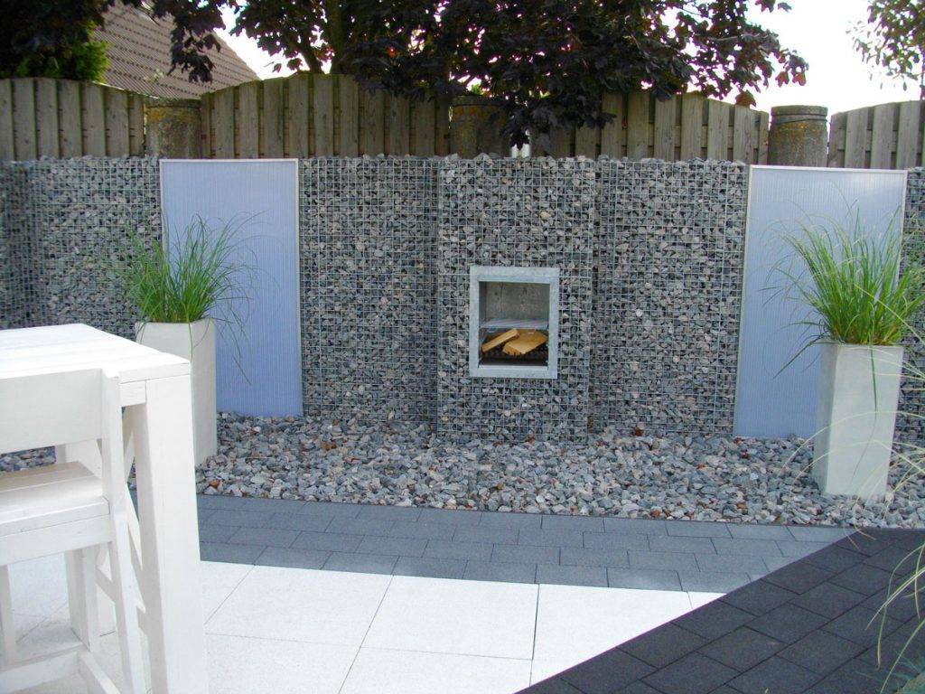 Габион в экстерьере появился не так давно. Новинка сразу была по достоинству оценена пользователями, которые стали делиться своими разработками и работами. Необычное название конструкции отождествляется с каркасом из металлического прута, заполненным карьерным камнем, боем шифера, кирпича и стекла.