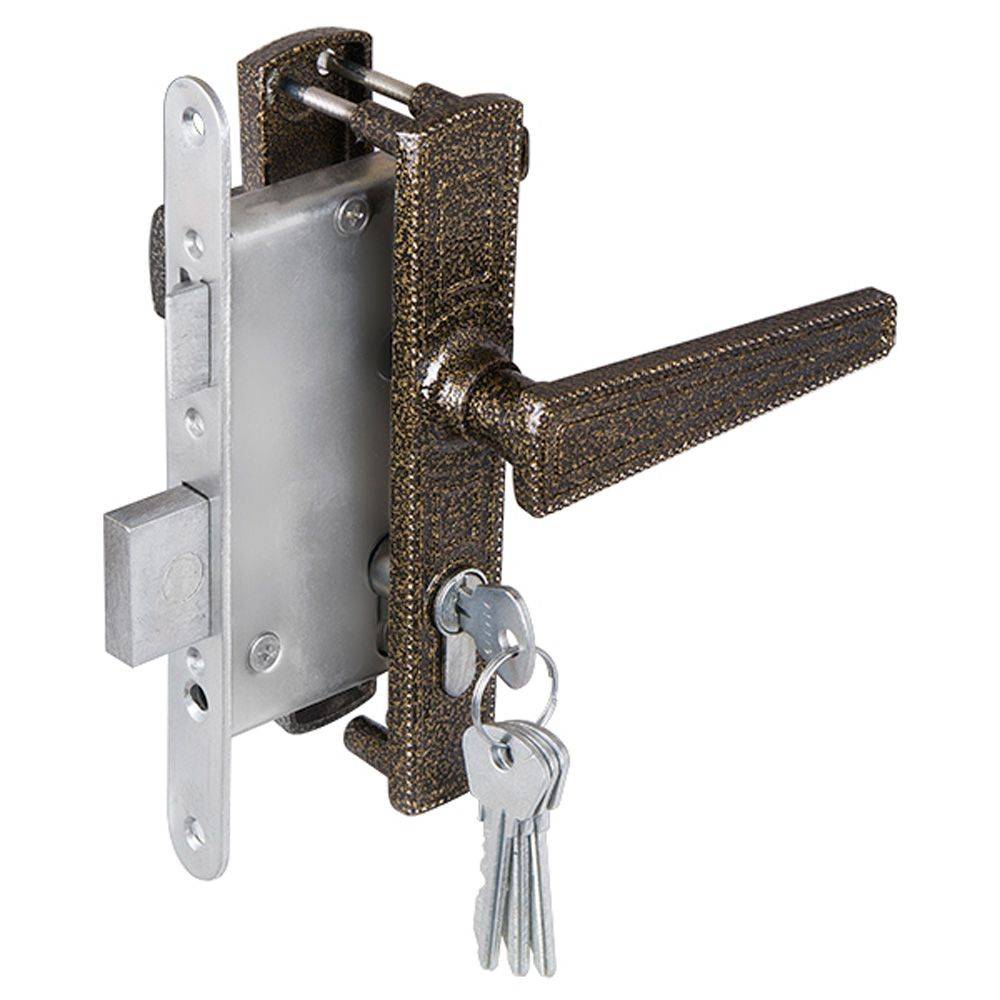 Замковый механизм монтируется внутрь металлической двери, запирается и открывается лишь ключами.