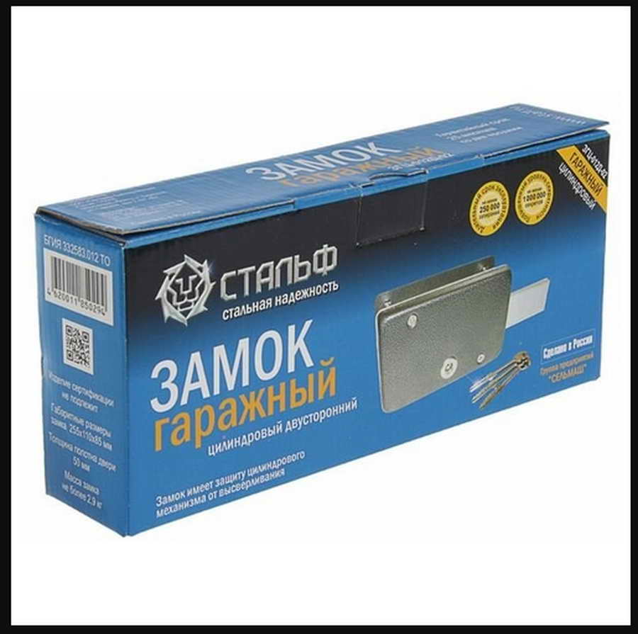 Металлический замок СТАЛЬФ с надежным цилиндровым механизмом предназначается для гаражей, складов и других хозяйственных построек.