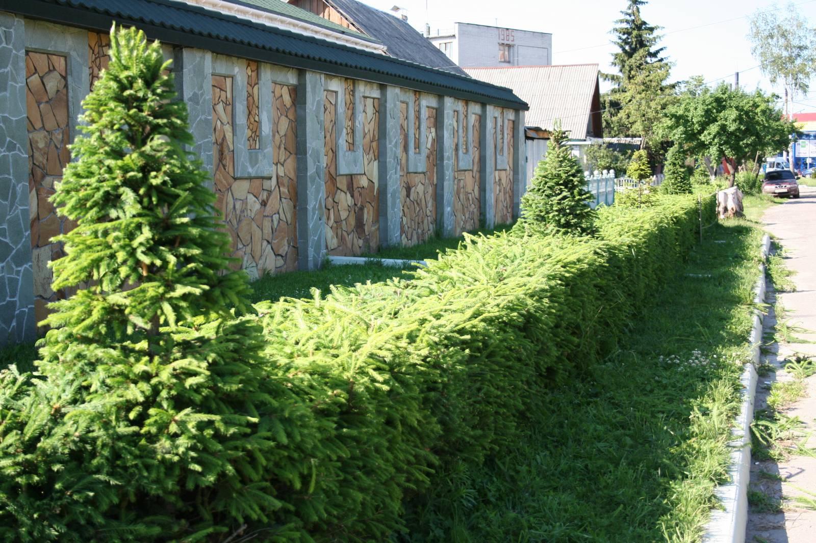 Живая изгородь из елей отличается прекрасными декоративными свойствами
