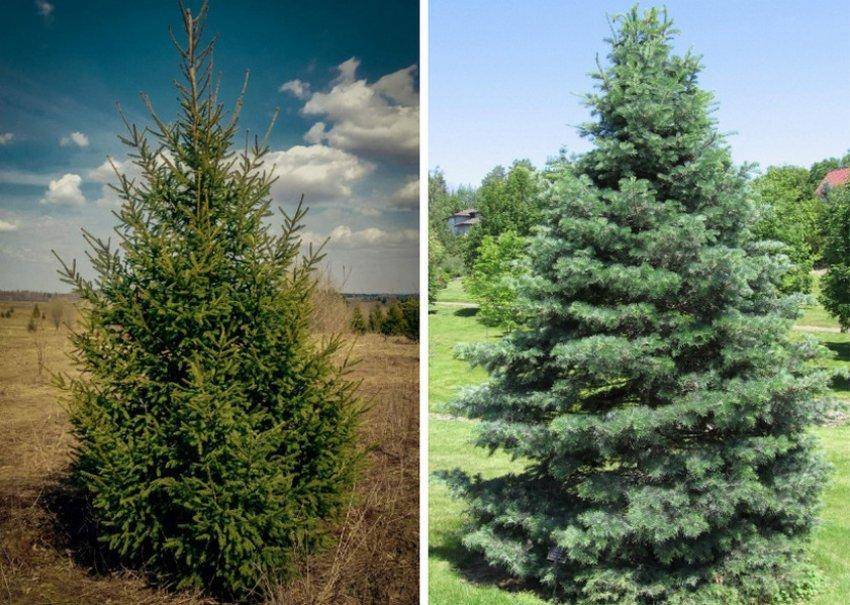 Другие названия этого дерева — канадская или белая ель. Верхняя часть кроны имеет синевато-зеленый оттенок, а нижняя — синевато-белая. Длина ее иголок может составлять от 1 до 2 см. В природе ее высота достигает 15-20 м. Отличается неприхотливостью и устойчивостью к климатическим проявлениям. Обычно растение имеет конусообразную форму, но карликовые сорта — шарообразные.
