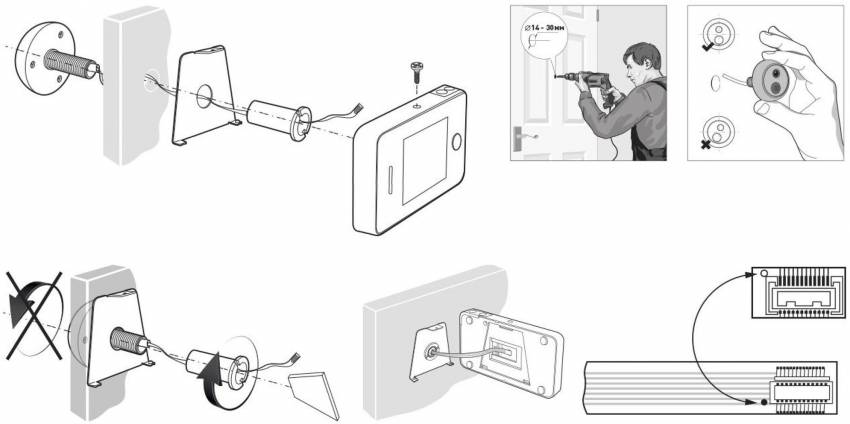 Схема самостоятельного монтажа видеоглазка на входную дверь